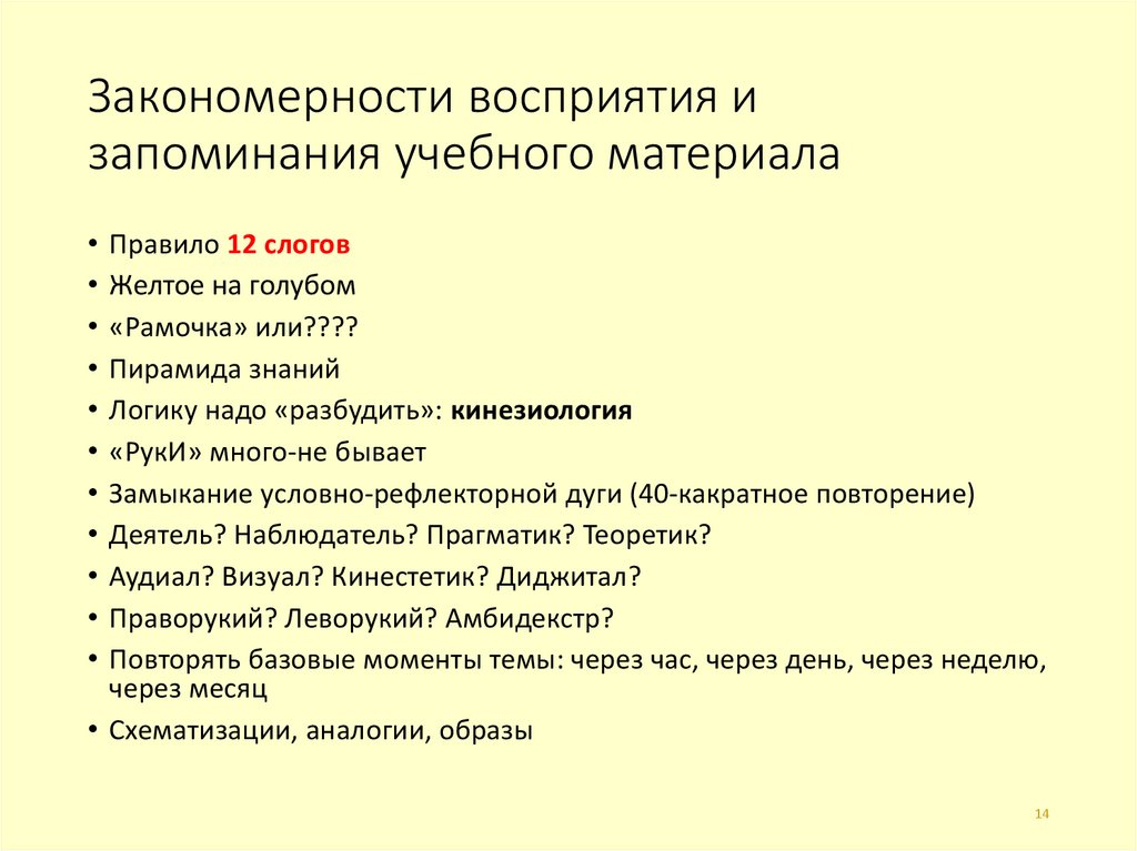 14. Закономерности восприятия и запоминания учебного материала