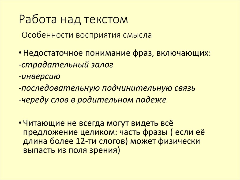 15. Работа над текстом Особенности восприятия смысла