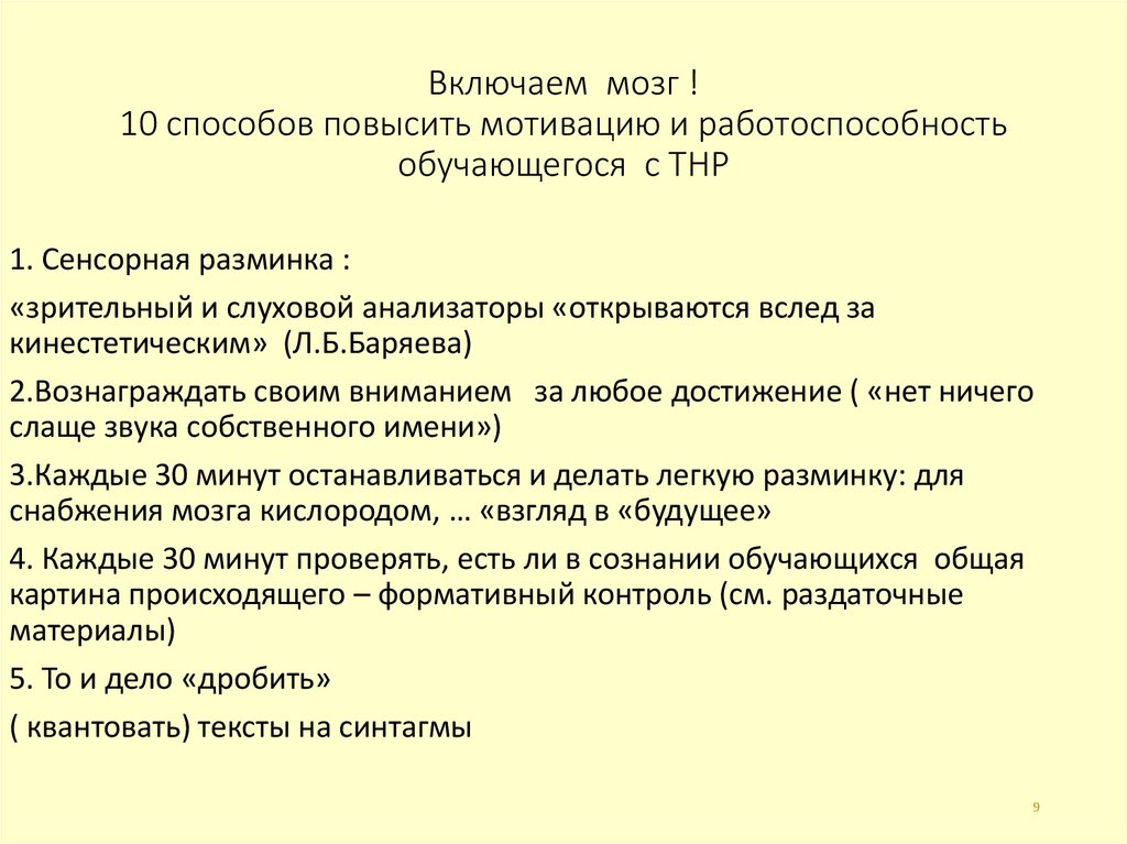 9. Включаем мозг ! 10 способов повысить мотивацию и работоспособность обучающегося с ТНР