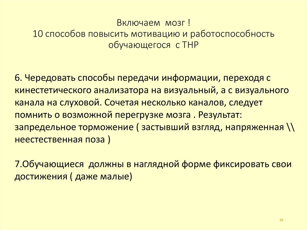 10. Включаем мозг ! 10 способов повысить мотивацию и работоспособность обучающегося с ТНР