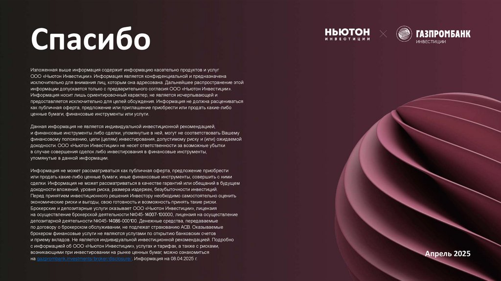 на gazprombank.investments/ broker/ disclosure/ . Информация на 08.04.2025 г.
