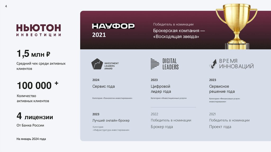 Брокерские и депозитарные услуги оказывает OOO «Ньютон Инвестиции», лицензия