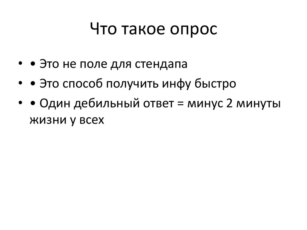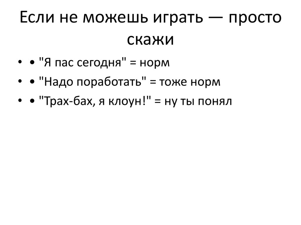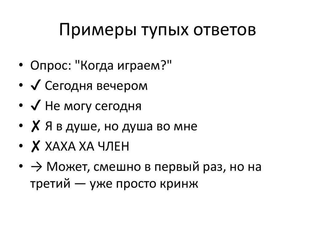 Примеры тупых ответов• Опрос: "Когда играем?"