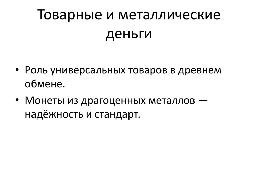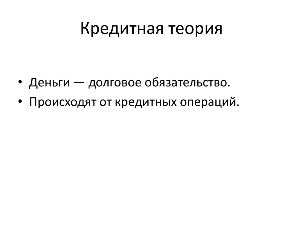 Металлистическая теория• Деньги — товар с внутренней стоимостью.