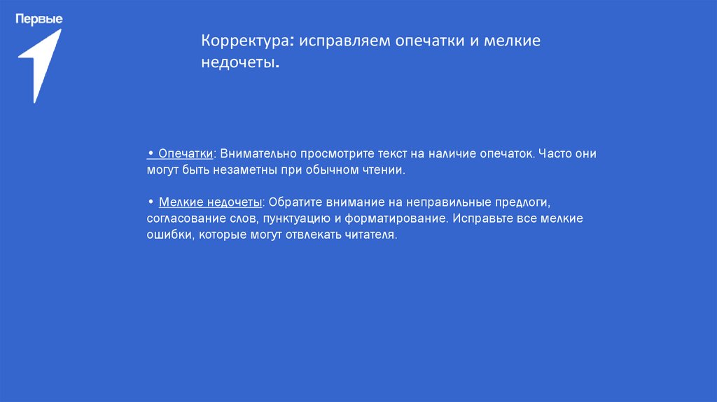 • Опечатки: Внимательно просмотрите текст на наличие опечаток. Часто они