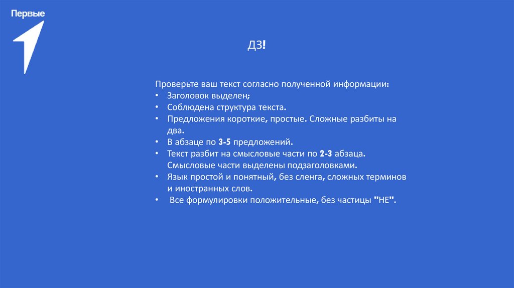 ДЗ!Проверьте ваш текст согласно полученной информации: