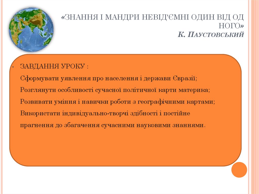 2. «ЗНАННЯ І МАНДРИ НЕВІД'ЄМНІ ОДИН ВІД ОДНОГО» К. Паустовський