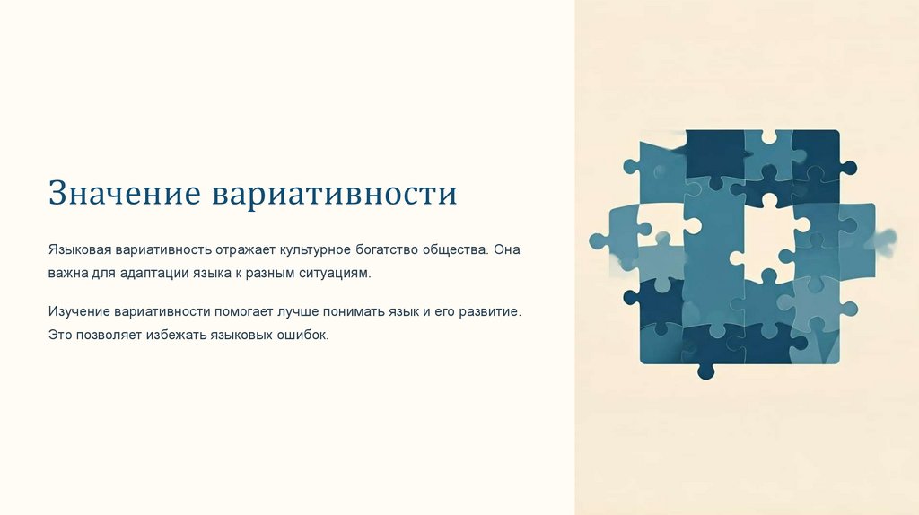 Значение вариативностиЯзыковая вариативность отражает культурное богатство общества. Она