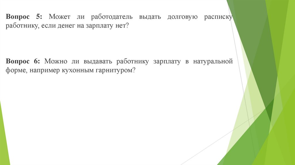 Вопрос 6: Можно ли выдавать работнику зарплату в натуральной