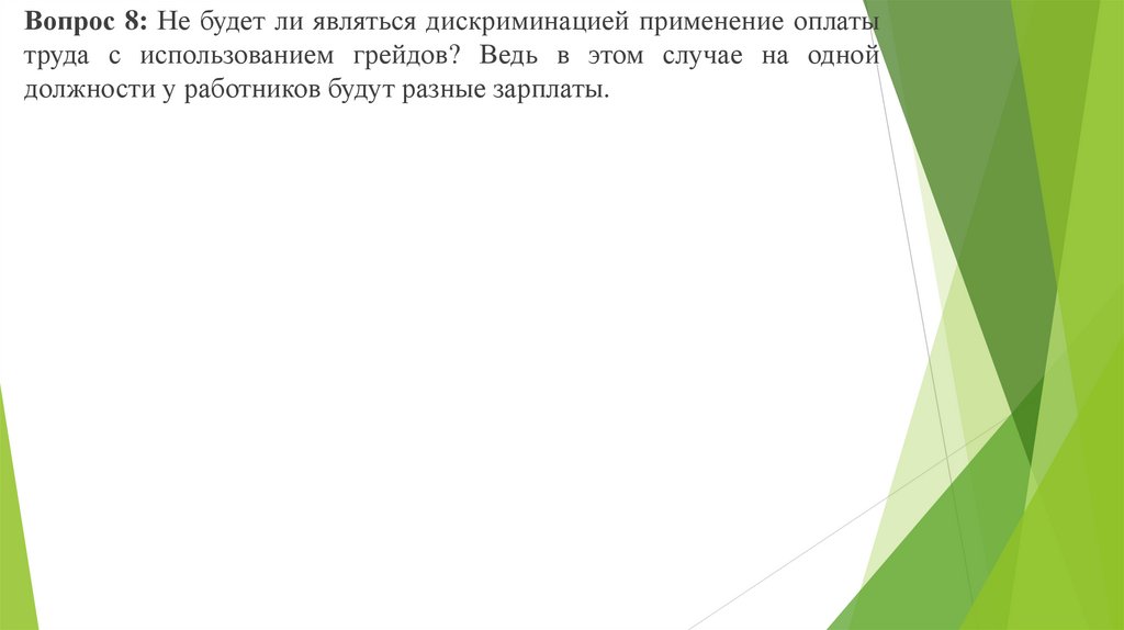 Вопрос 8: Не будет ли являться дискриминацией применение оплатытруда с использованием грейдов? Ведь в этом случае на одной