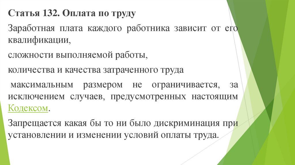 Статья 132. Оплата по трудуЗаработная плата каждого работника зависит от его