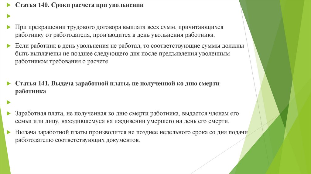 Статья 141. Выдача заработной платы, не полученной ко дню смерти