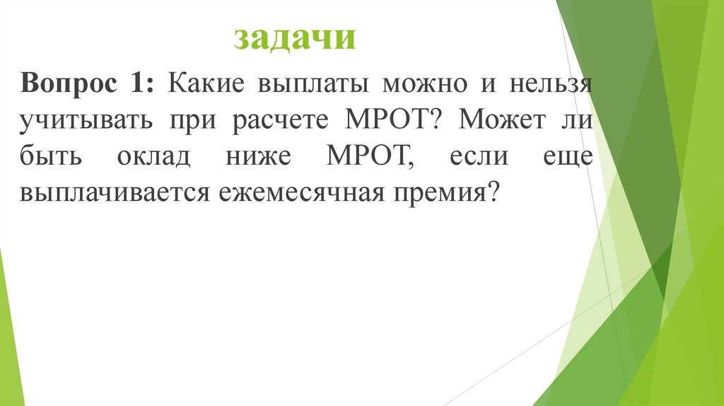 Вопрос 1: Какие выплаты можно и нельзяучитывать при расчете МРОТ? Может ли