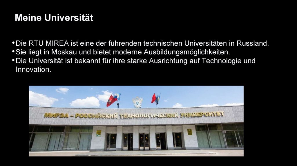 Meine Universität• Die RTU MIREA ist eine der führenden technischen Universitäten in Russland.