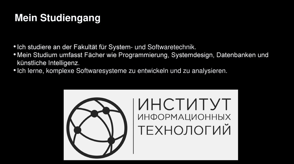 Mein Studiengang• Ich studiere an der Fakultät für System- und Softwaretechnik.