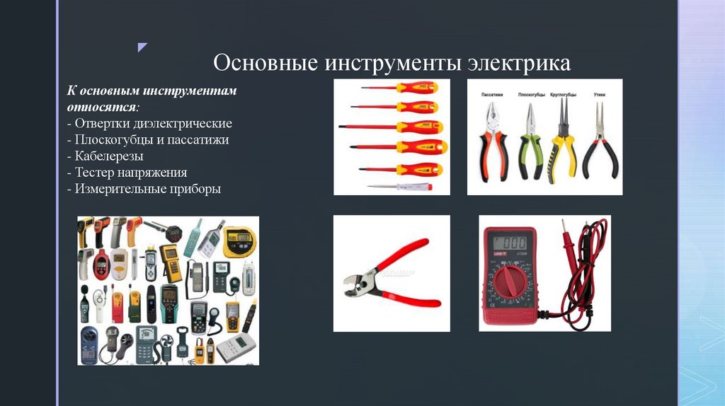 zОсновные инструменты электрика