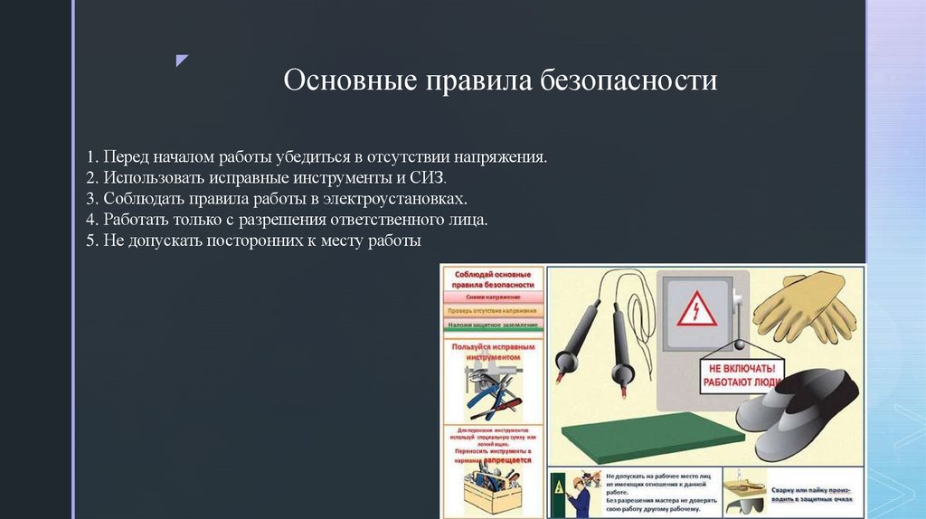 3. Соблюдать правила работы в электроустановках.