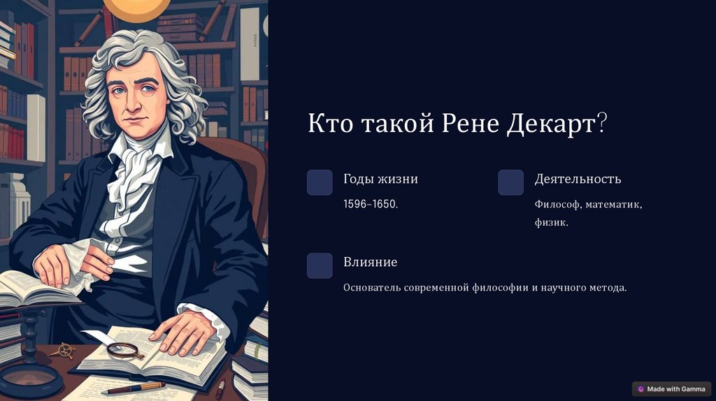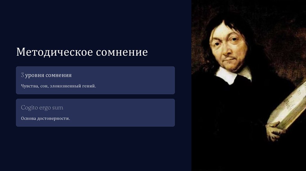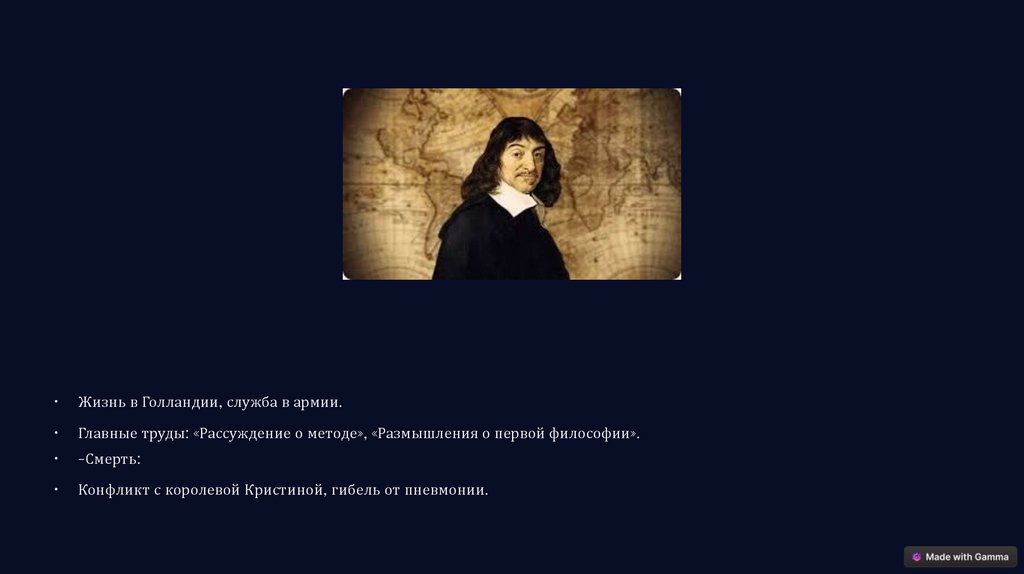 Главные труды: «Рассуждение о методе», «Размышления о первой философии».