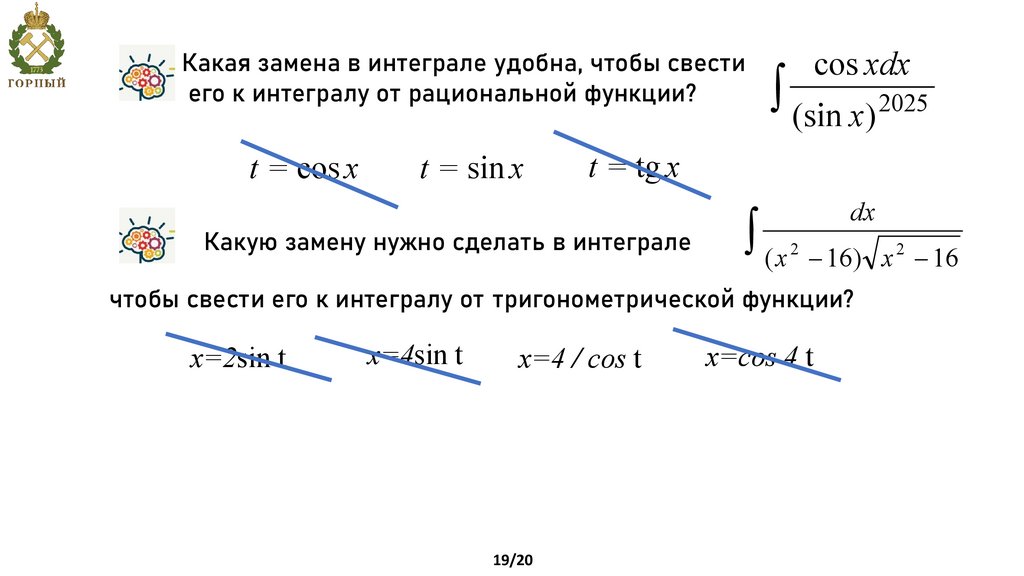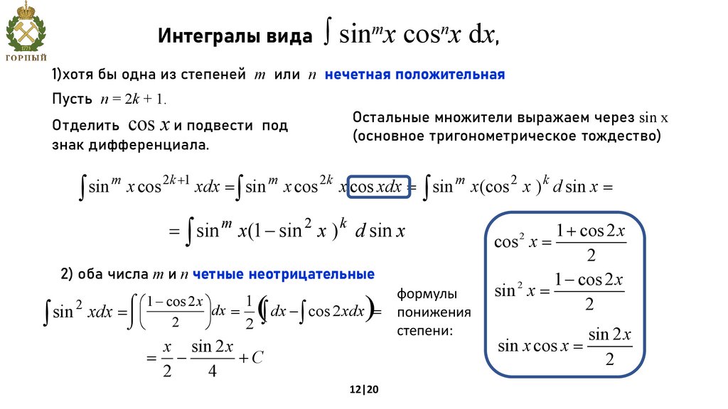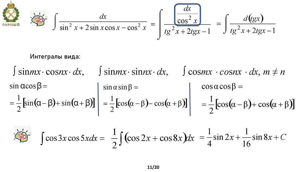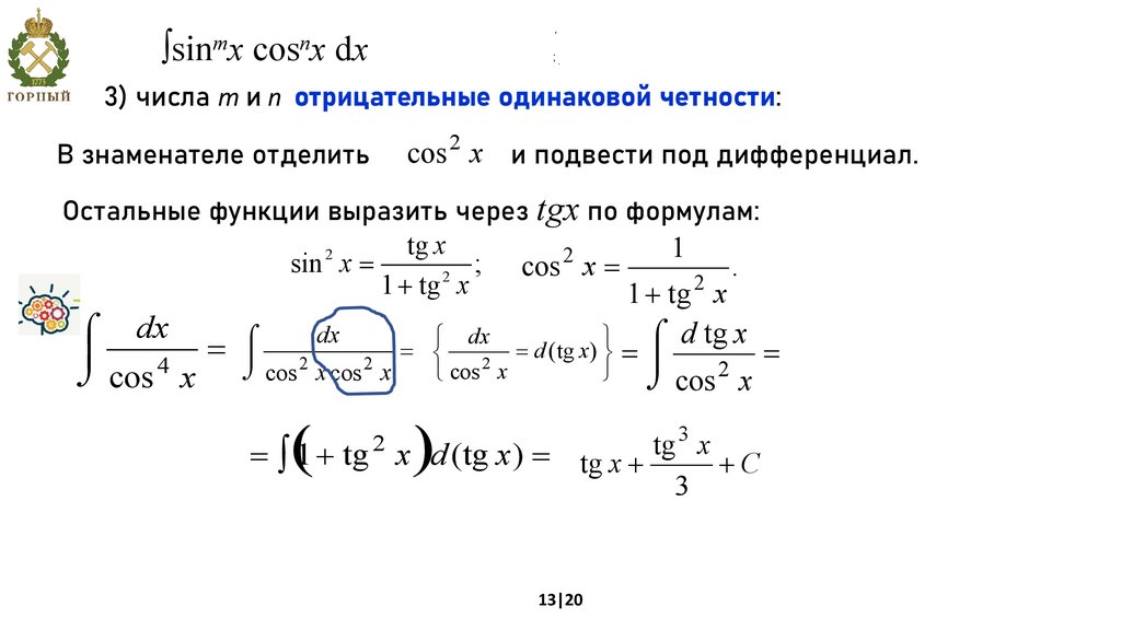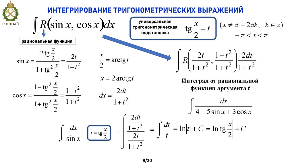 т.е. R(sin x, cos x) = –R(sin x, cos x), то применяется подстановка