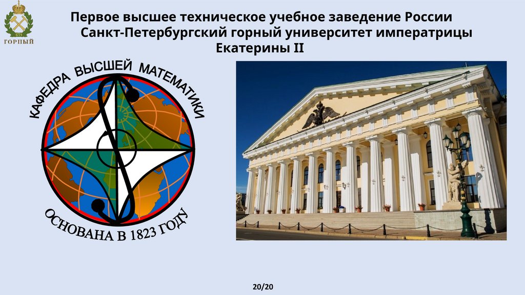 Первое высшее техническое учебное заведение РоссииСанкт-Петербургский горный университет императрицы
