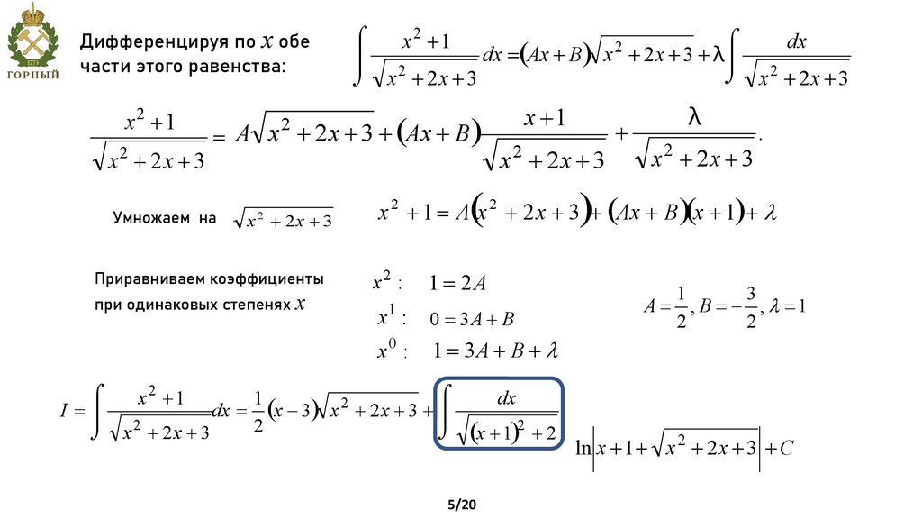 Интегрирование иррациональных и тригонометрических выражений
