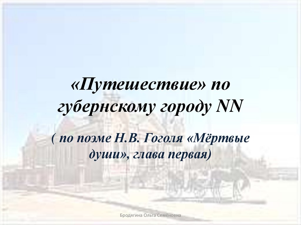 «Путешествие» по губернскому городу NN ( по поэме Н.В. Гоголя «Мёртвые души», глава первая)