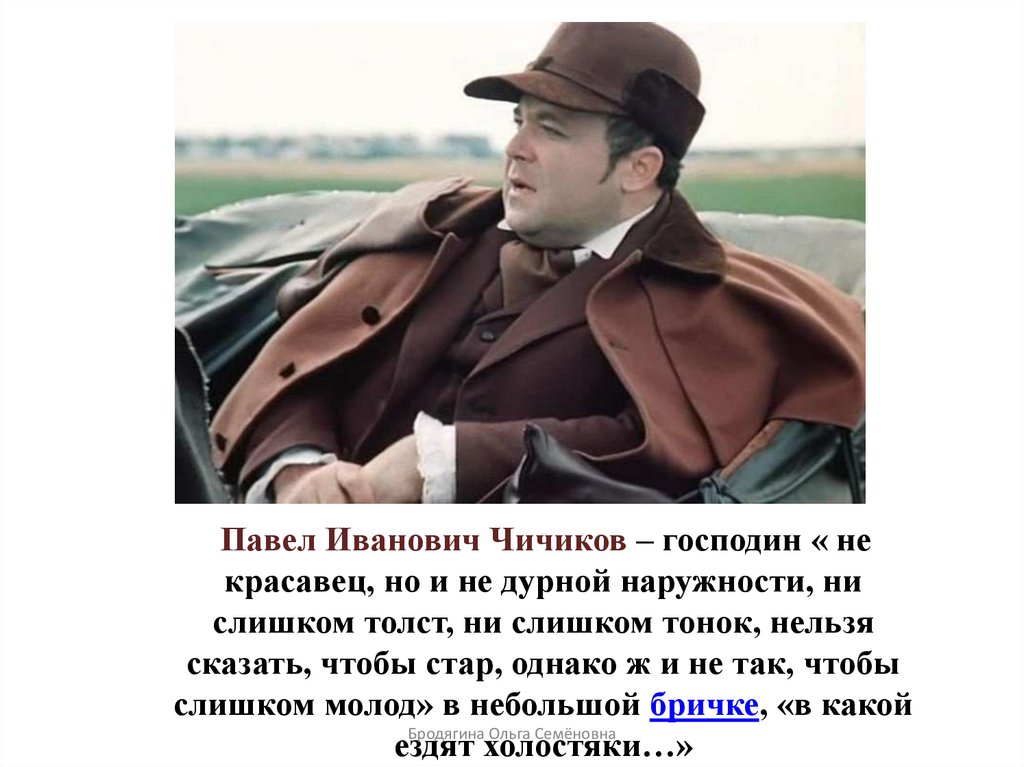 Павел Иванович Чичиков – господин « некрасавец, но и не дурной наружности, ни