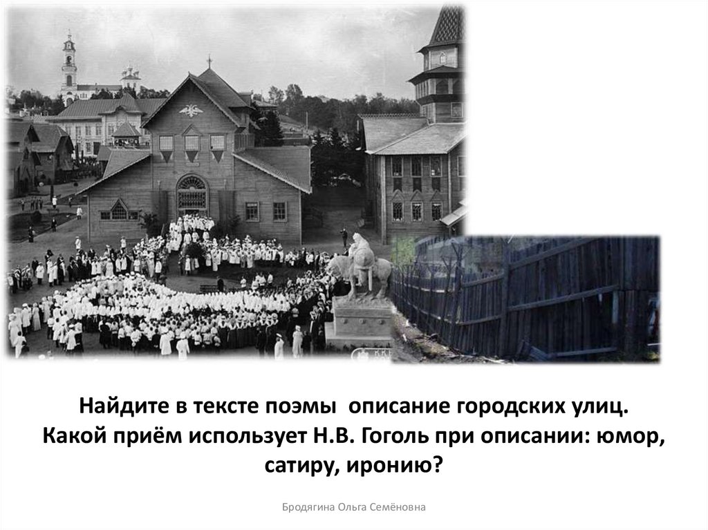 13. Найдите в тексте поэмы описание городских улиц. Какой приём использует Н.В. Гоголь при описании: юмор, сатиру, иронию?