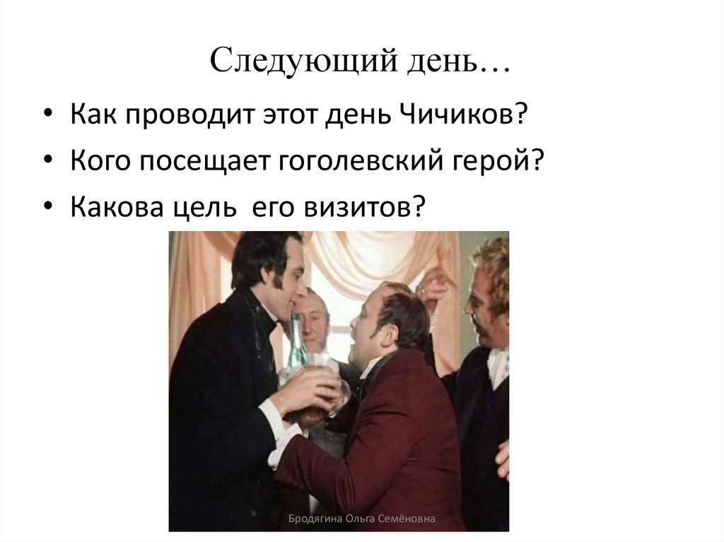 • Как проводит этот день Чичиков?• Кого посещает гоголевский герой?