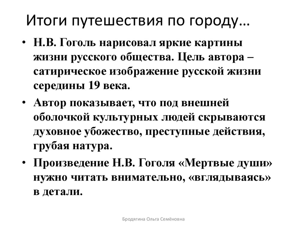 ( по поэме Н.В. Гоголя «Мёртвыедуши», глава первая)