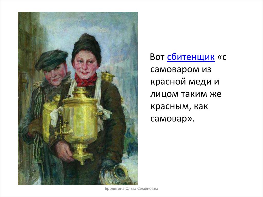• Бричка – вид повозки.• Сбитенщик – продавец сбитня, горячего