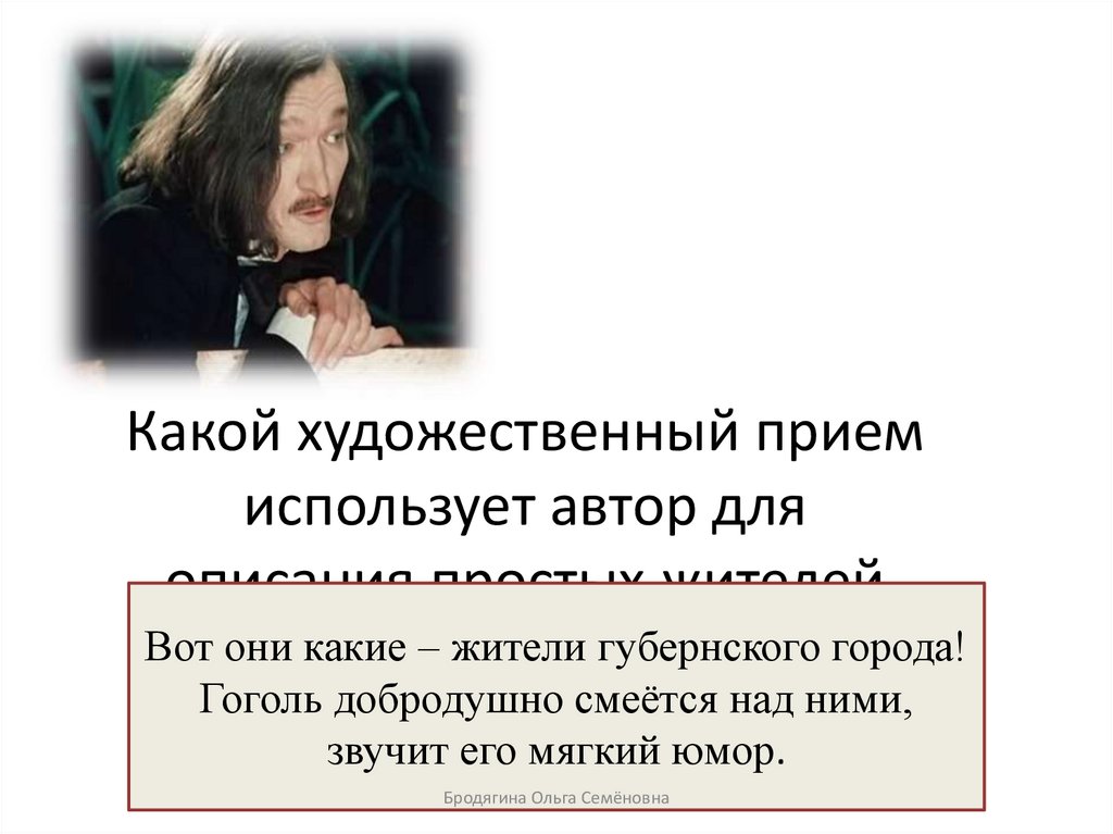 8. Какой художественный прием использует автор для описания простых жителей губернского города: сатиру, иронию, юмор?
