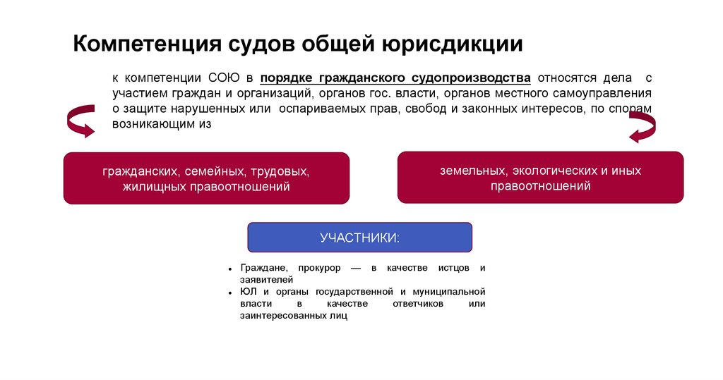 Компетенция судов общей юрисдикции и подсудность дел судам общей юрисдикции. Система судов общей юрисдикции