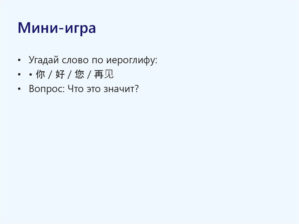 Приветствие с уважением• • 你好 — для друзей и ровесников