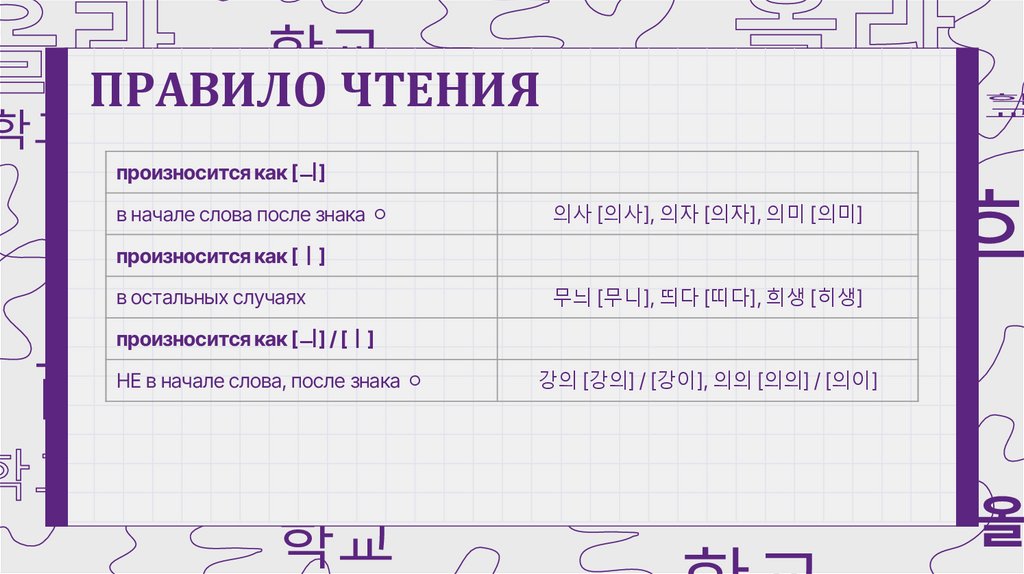 произносится как [ㅢ]в начале слова после знака ㅇ