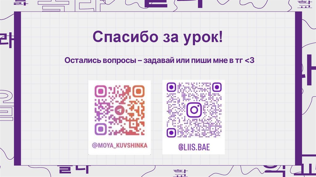 Спасибо за урок!Остались вопросы – задавай или пиши мне в тг <3