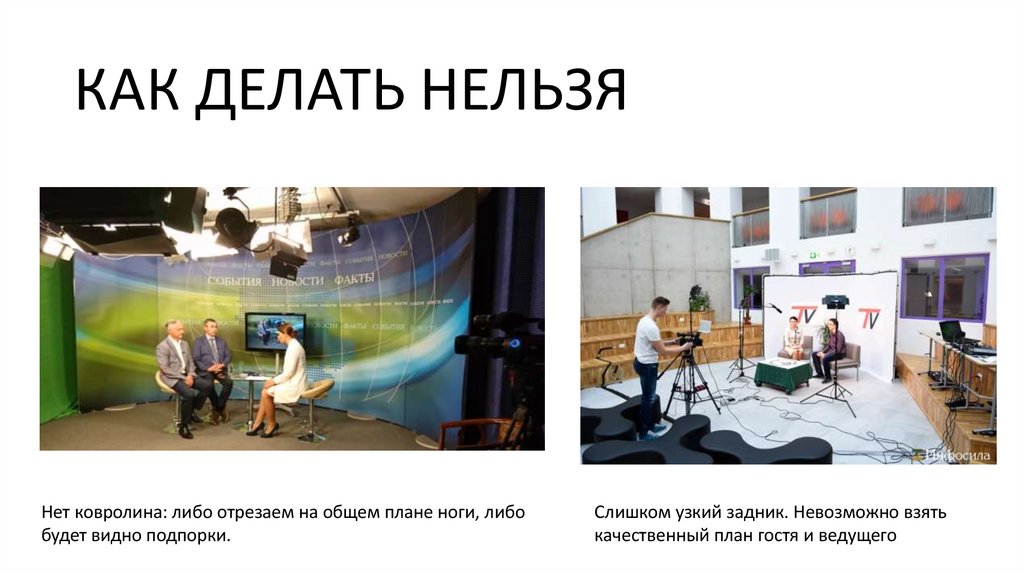 КАК ДЕЛАТЬ НЕЛЬЗЯНет ковролина: либо отрезаем на общем плане ноги, либо