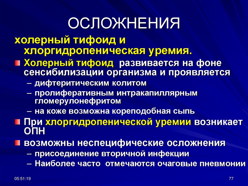 ОСЛОЖНЕНИЯхолерный тифоид и