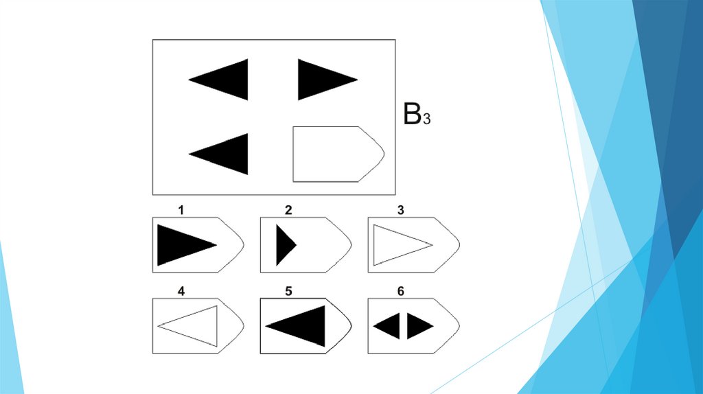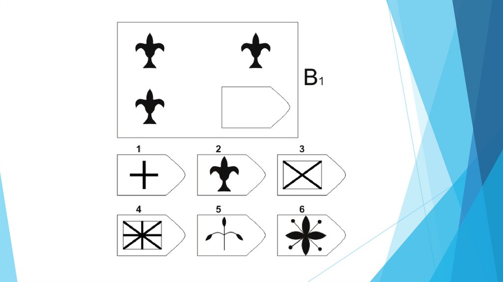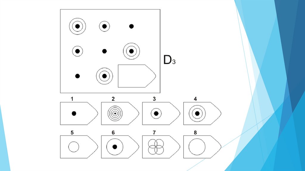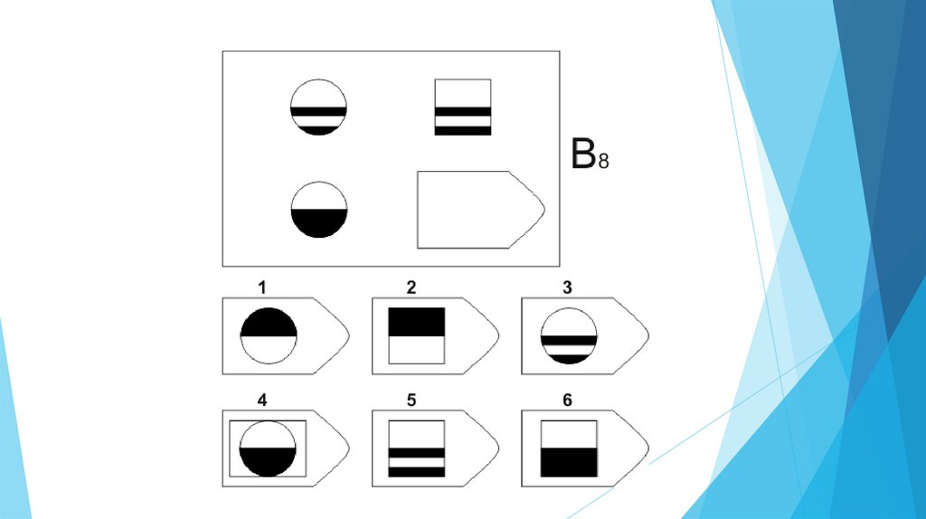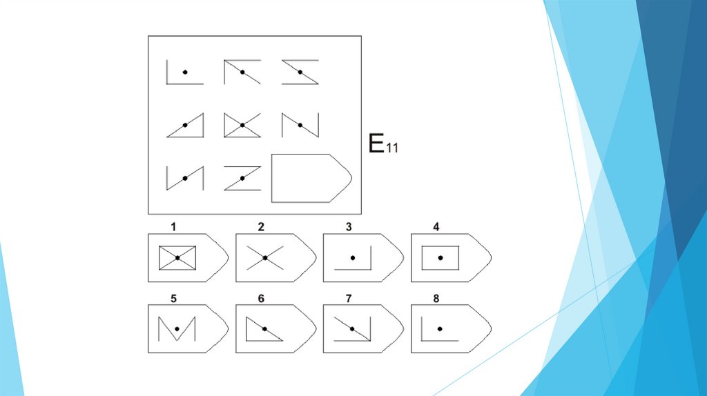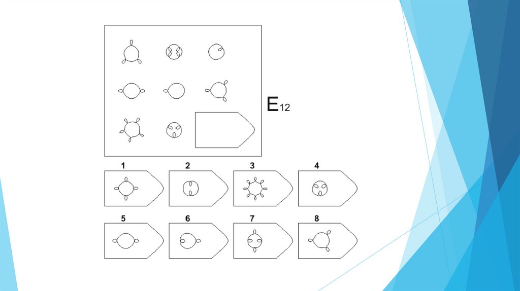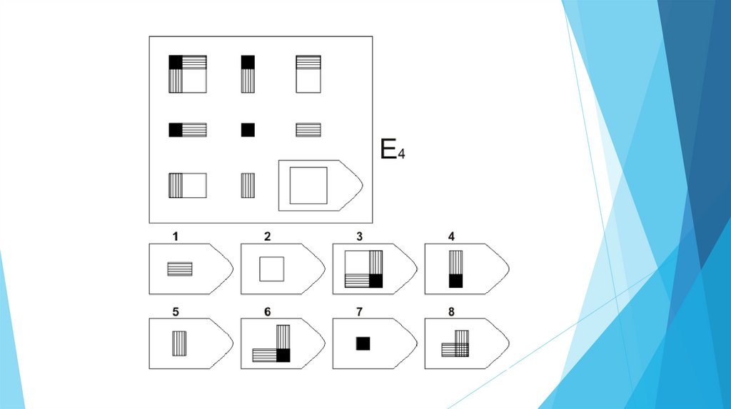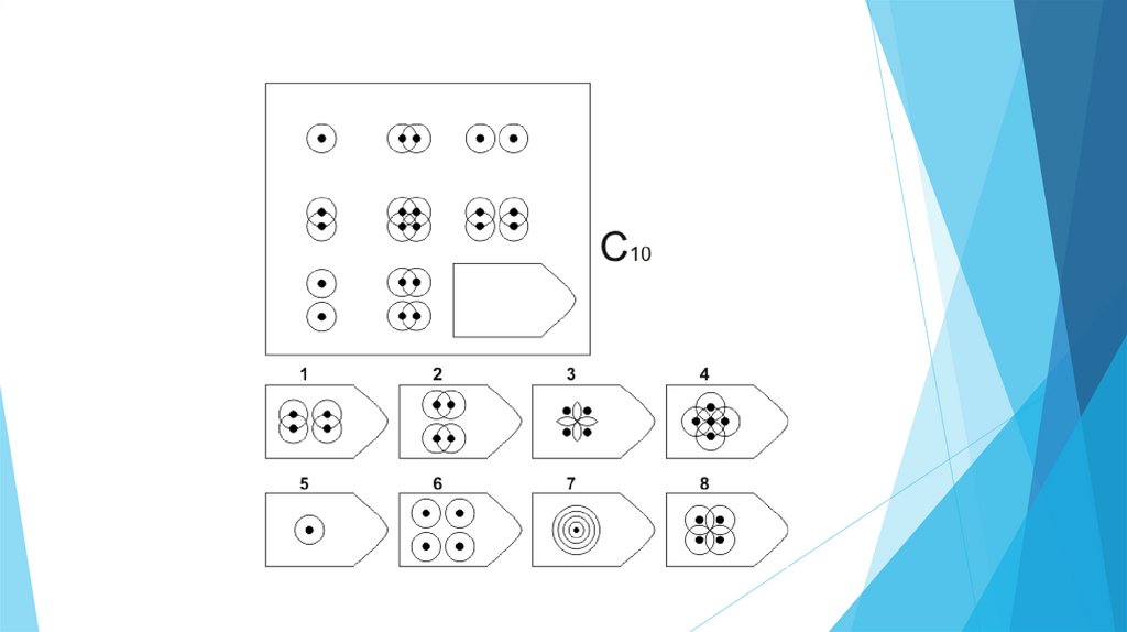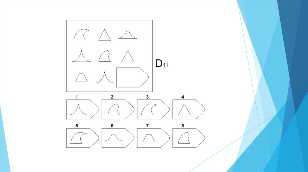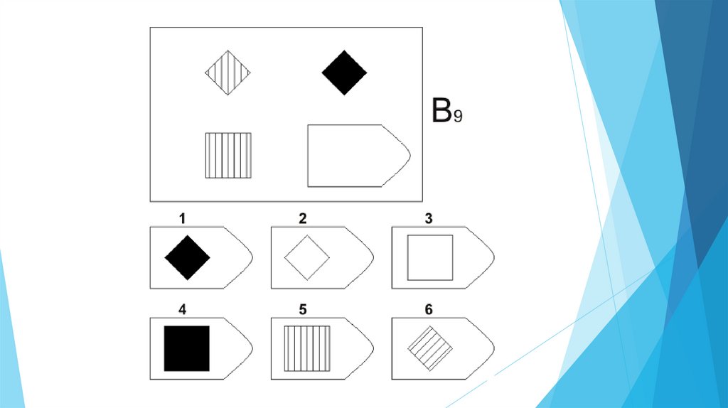 Задача испытуемого - выбрать недостающий элемент матрицы среди 6-8