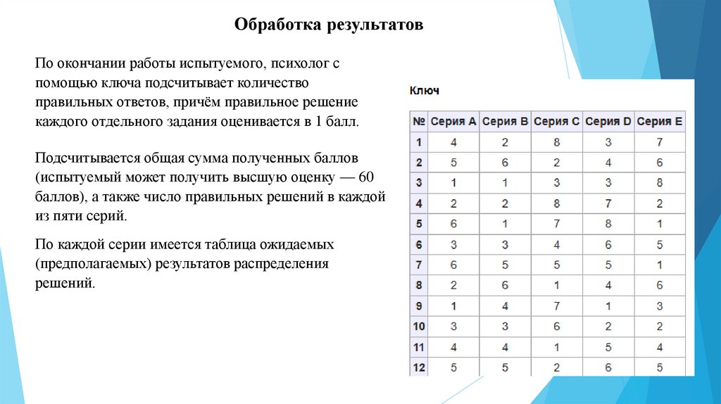 Обработка результатовПо окончании работы испытуемого, психолог с