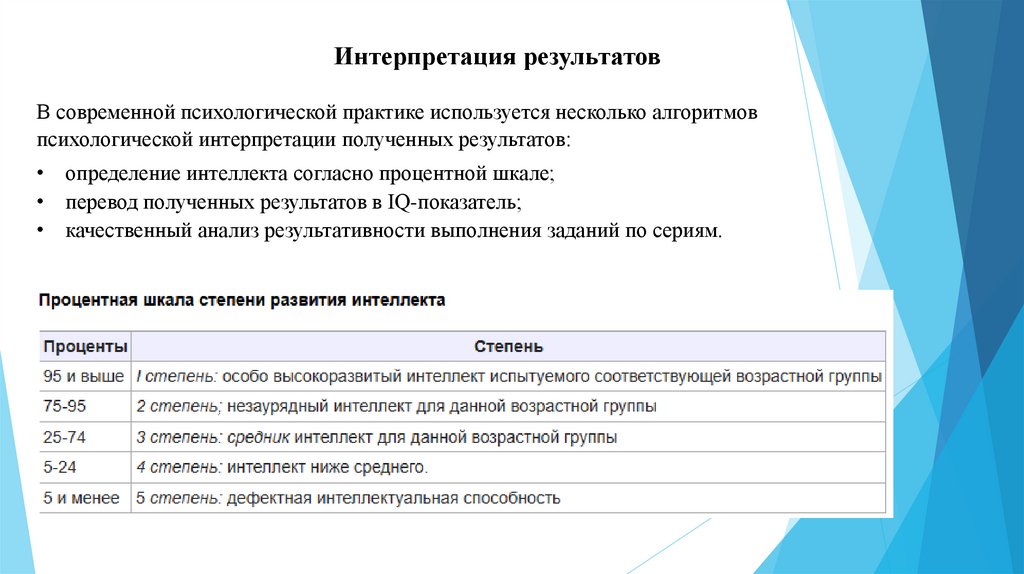 Интерпретация результатовВ современной психологической практике используется несколько алгоритмов