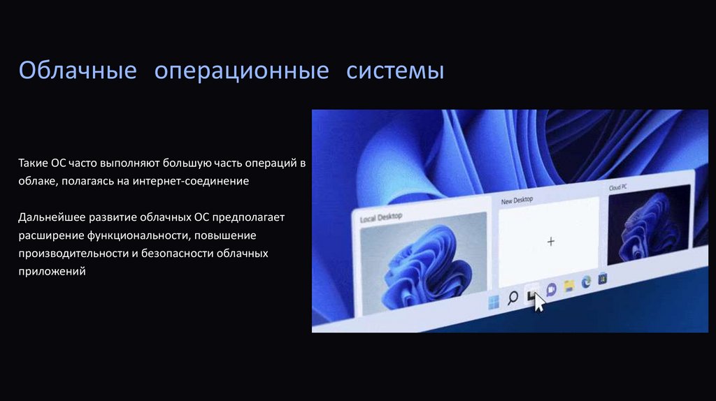 Облачные операционные системыТакие ОС часто выполняют большую часть операций в