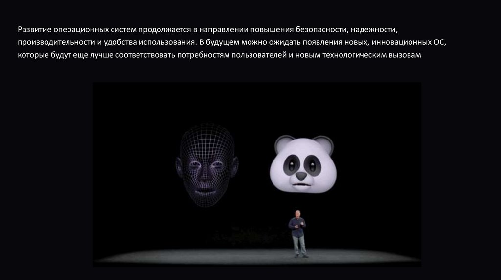 Развитие операционных систем продолжается в направлении повышения безопасности, надежности,производительности и удобства использования. В будущем можно ожидать появления новых, инновационных ОС,
