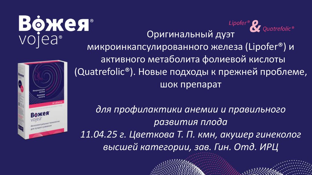1. Оригинальный дуэт микроинкапсулированного железа (Lipofer®) и активного метаболита фолиевой кислоты (Quatrefolic®). Новые