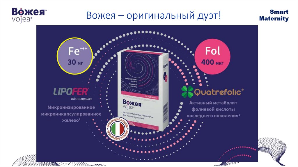 Вожея. Оригинальный дуэт микроинкапсулированного железа (Lipofer®) и активного метаболита фолиевой кислоты (Quatrefolic®)