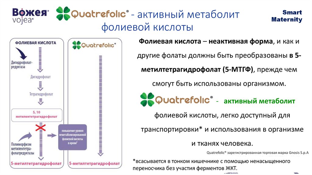 *отсутствие верхнего допустимого уровня потребления для Quaterofolic согласно
