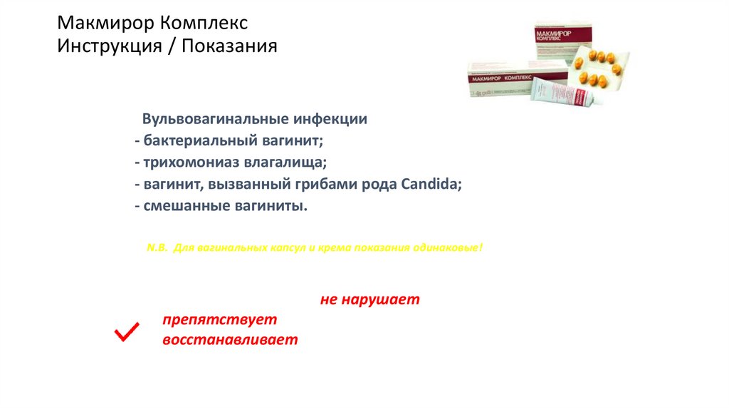 N.B. Для вагинальных капсул и крема показания одинаковые!