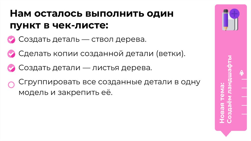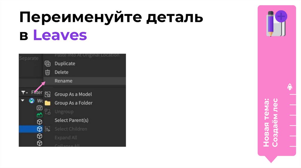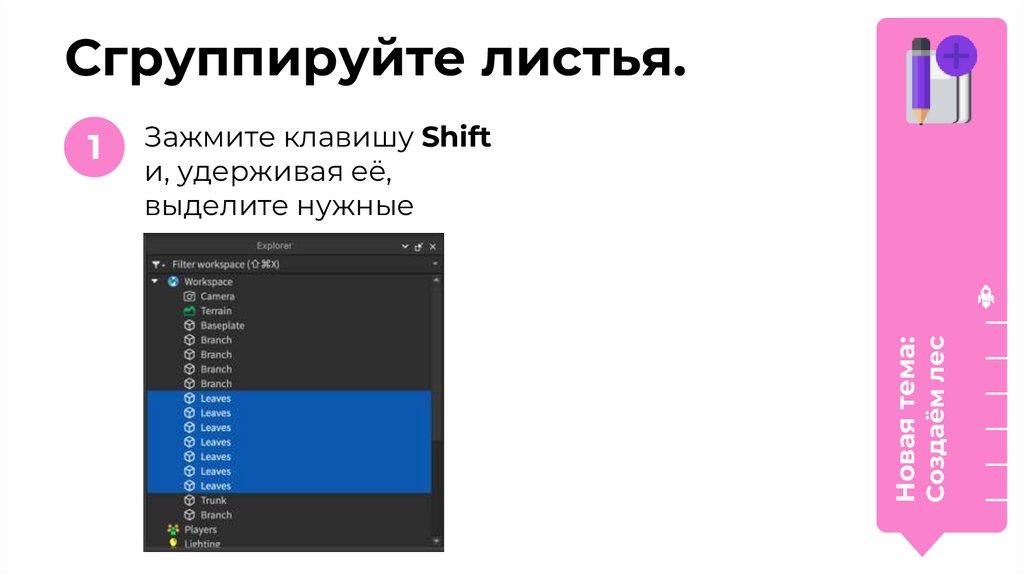 Для создания дерева нам нужно:Создать детали — листья дерева.