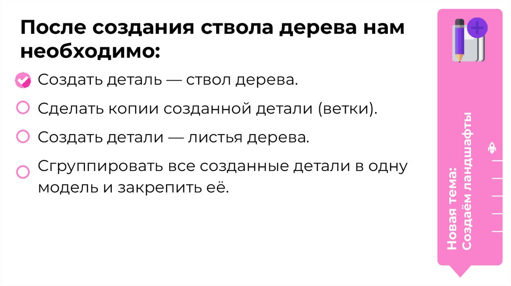 После создания ствола дерева намнеобходимо: