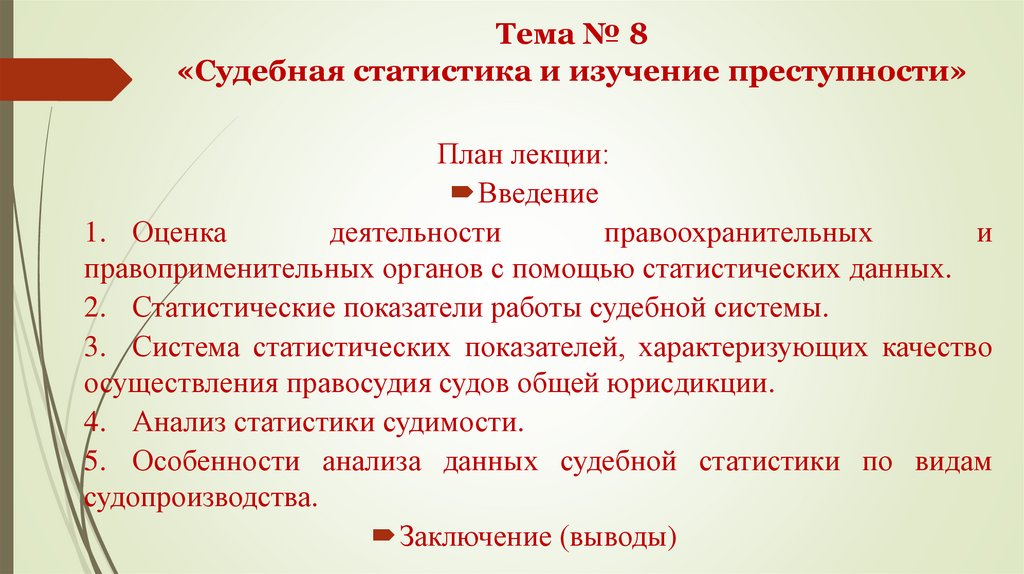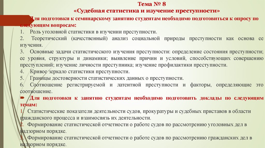 2. Тема № 8 «Судебная статистика и изучение преступности»